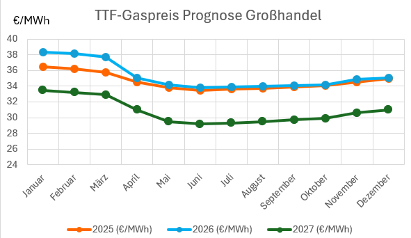 Gaspreis Prognose 2025, 2026 und 2027 für den Großhandel
