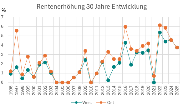 Chart 30 Jahre Rentenerhöhung: 1996 – 2025